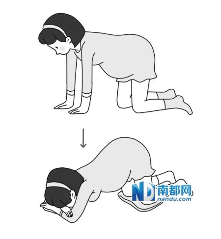 何春蕾提醒,这个姿势的要点,是你的臀部角度>90°,也就是你的大腿不要承托在腹部下方(闭合式膝胸卧位)。否则不能提供足够的空间来让胎儿退出骨盆重新置位。你可以选择宝宝活动的时候做这个姿势,每天三次,每次10分钟。最好是空腹并且膀胱也是空着的时候来做,同时尝试让你的腹部肌肉放松,想象你的宝宝正在翻滚到头位。