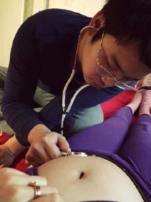 妈妈从网上知道,听诊器可以听到宝宝的心跳,爸爸很着急的趴在妈妈肚子上听,还温柔的说:“糖果,我是爸爸。”