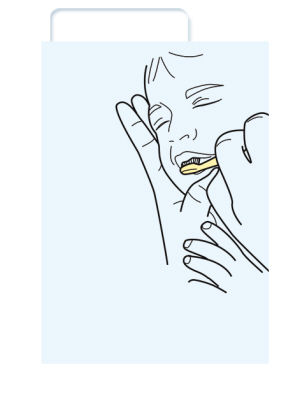 用具:消毒纱布或棉签、温开水、指套牙刷