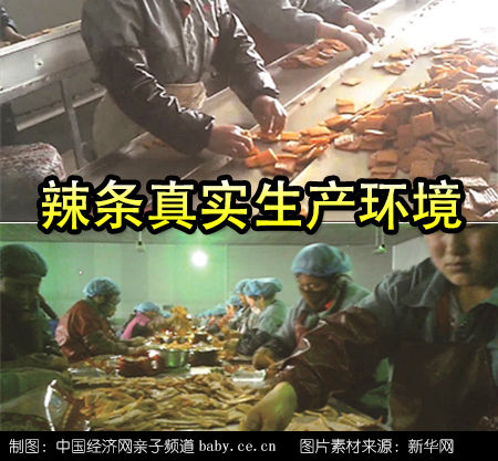 “辣条”再一次火了!不过,这次这款号称“史上最牛零食”的食品,被打上了“脏”的印记。在新华社发布的调查图文里赫然可见,工人们徒手将辣条一块块装入塑料包装袋,“由于长时间接触辣条,双手被浸得泛着红色的油光,一些人的手指出现红肿甚至溃烂”。如此脏乱差的生产环境,令公众对辣条的质量卫生产生前所未有的担忧。