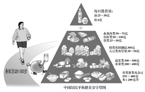 “金字塔”第四层,就是摄入量要严格控制的油脂和盐。每日油脂摄入25~30克为宜,盐的摄入量每人每天不应超过6克。本报记者 李思璇 通讯员 王青青