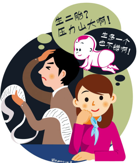 一听到“单独”夫妇可生二孩的政策将启动的消息,我便开玩笑地对妻子说:“如果你是独生女就好了,我们再要一个孩子的梦想就能实现。”妻子也不示弱,调侃我说:“如果你是独生子,我马上就备孕,明年生个马宝宝。”