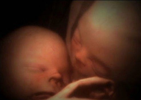 在狭小的子宫内,两个宝宝不得不脸贴着脸。