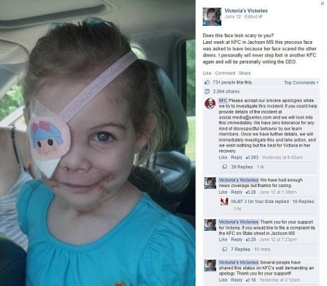 美3岁毁容女童被肯德基拒之门外