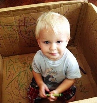 蜡笔+空纸箱=安静的游戏空间,可以尝试一下。