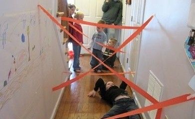 找一个过道,左右两边贴一些纸条作为路障,孩子们需要身体不接触路障而顺利通过,充满刺激的小游戏,很适合家庭聚会哟。