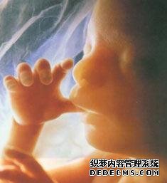 第5个月:胎动愈来愈强烈,胎儿已长出头发,会吮吸拇指,身体各部分的器官逐渐成长。胎儿长约25厘米,重约224克至500克。