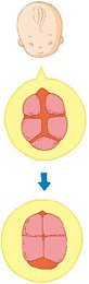 胎儿的头骨很软,并且还会在通过产道的时候自动拼合,胎儿正是因为这样柔软的头盖骨,才得以避免因挤压而造成的永久性伤害,而顺利地把头钻出产道——这也是我们常常看到的新生儿是“ 尖脑袋”原因。这种头盖骨的自动调整,会在几天后还原。