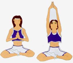 方法:简易交叉坐,脊背伸直,肩放松,下巴微收,双手合十。呼吸均匀、缓慢。吸气双手上举,用力伸展侧腰,以此姿势静止,把意识集中在身体两侧。做5次深呼吸,回到原来。