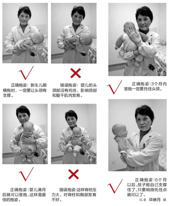不同月龄的宝宝,到底该怎么抱?昨天,记者就此采访了南京市妇幼保健院儿保所副主任医师胡汝基。