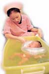 如果小宝宝在水中乱抓,就表示他有些害怕,护士会握着他们的小手安慰他们。