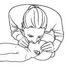 用一只手扶着宝宝的头向后仰,另一只手轻轻地抬起他的下巴(婴儿的头不用向后倾斜很多,就可以打开气管)。检查生命迹象(活动和呼吸),但不要超过10秒钟。