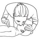 检查宝宝的呼吸,低下头靠到宝宝的嘴前,眼睛看向他的脚——检查他的胸部是否有起伏,并仔细听是否有呼吸声。如果他在呼吸,你应该能感觉到他呼到人面颊上的气。