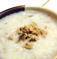 小贴士:核桃中含有丰富的不饱和脂肪酸,对小宝宝神经系统的发育极为有利,但核桃较硬,在制作的时候一定要彻底粉碎,也可以用粉碎器粉碎成核桃末。