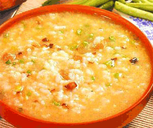 稀烂、黏稠、鲜滑,据称这种粥有养肝明目作用。猪肝中含有丰富的铁,还是补充铁质的良好来源。