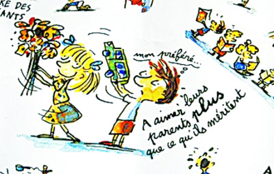 12.用来提那些谁也答不出的问题,把父母搞疯。不然,我们怎么能知道疯狂和“书到用时方恨少”的滋味呢?有了孩子,我们真的就可以变得很谦虚,很有自知之明。在大街上看看那些单身汉和爸爸们不同的表情就行了。有的是意气风发指点江山才华横溢的样子……有的呢,是谦卑的、和蔼的、认命的,一副后生可畏的无奈劲儿。