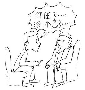 说着说着,这个人就真的无精打彩了。他困了。