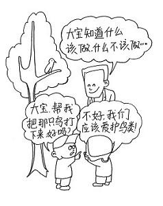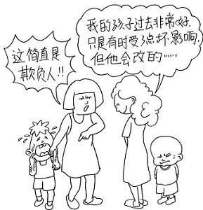 如果孩子现在在社会适应能力和道德方面的情况不良,同样,把这个不良当做暂时现象。譬如你的孩子这两天表现粗暴,抢小朋友的东西。遇到这种情况,你要批评,但是你也可以这样说:大宝平常特别关心别的小朋友,这两天有点走样了。