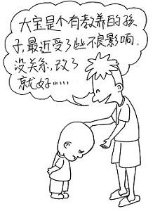 你不能说:你真是个坏孩子!你真是个没教养的孩子!不可以这样说。而要说:大宝是个有教养的孩子,但是这段时间受到一些坏影响,改了就好。
