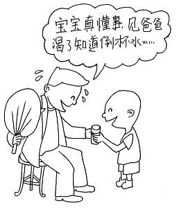 你看,这个孩子真能够体谅人,看见爸爸累了,知道给爸爸倒杯水。