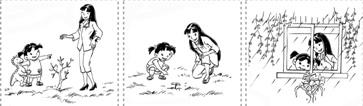 孩子:妈妈,你看我们种的花发芽了。