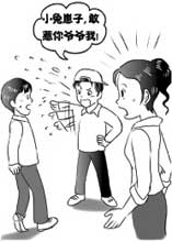 一个七八岁的儿童,经常坐爸爸的车外出,每逢堵车或有人超车时,爸爸总是口出不逊,不是骂警察就是骂别的司机,致使孩子也是满口脏话。一天,妈妈接他下学,正见他站在校门口对另一个同学口吐狂言:“小子!你他妈等着,明天让我爷爷收拾你,小兔崽子,敢惹你爷爷我!”妈妈吃惊小小的孩子能说出这样的话来。原来,儿子经常和他爷爷外出,在街上被挤了或被自行车刮碰,爷爷便口出不逊,张嘴就骂,有时还动手打人,孙子也就学得满口脏话。