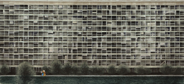 “大楼里的人们也像我一样住在小小的盒子里。” (这是北京的著名的soho建筑,离我们家倒不远)