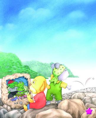 淘淘狗和小老鼠米粒来到河滩上。哇!这里有好多好多的石头,大的有一间屋子那么大,小的呢,就像一粒黄豆。“你看——”米粒随便捡起一块小石头,“像什么?看出来了吗?”“没看出来。”淘淘老老实实地回答。“真没想象力,这块石头多像一只老鼠呀,我们就叫它老鼠石吧。”米粒把石头高高地举起来。尖尖的嘴巴,圆圆的耳朵,一条长长的尾巴,还真有点像呢!两人继续兴奋地找啊找。“我找到了一块象石,看,像不像一头小象?”淘淘说。“我找到了一块鱼石,”米粒说,“这是头,这是尾,这是眼睛,这是鱼鳍……”“我们把这些石头背回去吧,”淘淘提议,“送给朋友,送给爱石头的人。”“好啊,用草莓号飞船运回去!”