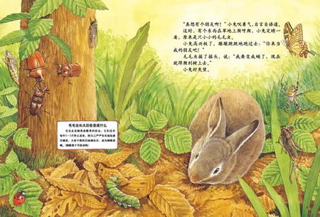 这时,有个东西在草地上爬呀爬,小兔定睛一看,原来是只小小的毛毛虫。