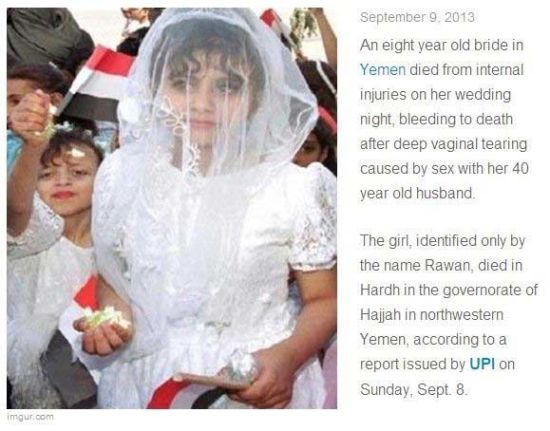 也门8岁新娘出嫁,初夜死于内部损伤