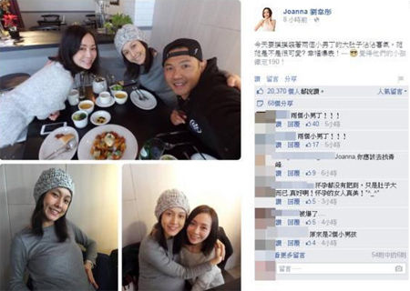 据台湾媒体报道,“范范”范玮琪和陈建州(黑人)结婚3年终于做人成功,8月开心宣布怀了双胞胎,预计明年2、3月升格当爸妈,对“大小熊猫”的期待之情溢于言表,但肚中胎儿的性别始终是个谜,不过这个秘密却意外被美女厨师刘韦彤(Joanna)泄漏,成为意外小插曲。Joanna在晒出与范玮琪夫妻聚餐照片时留言:“今天要摸摸装着两个小男丁的大肚子沾沾喜气。范范是不是很可爱? 幸福爆表!”让一众网友恍然大悟,远离范范怀了两个男丁。