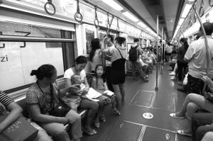 下午6点左右,2号线迎来了下班高峰期,时报记者再次进入车厢对比体验发现,相比于车厢内部空旷的平峰时期,高峰时期的轨道交通车厢内温度明显有所升高。