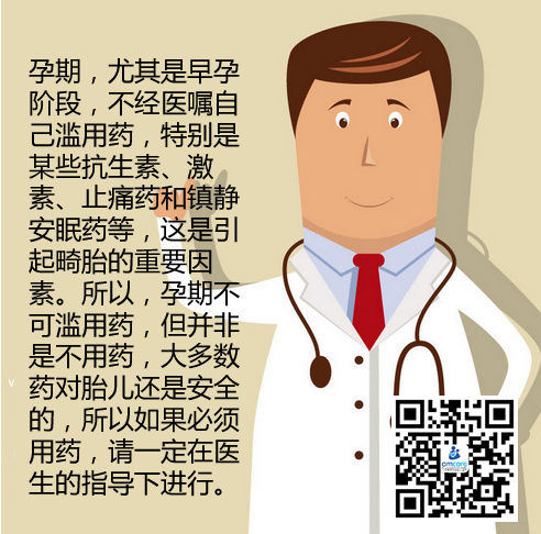 处方药:当你发现自己怀孕时,如果你正在服用抗抑郁类药物、抗生素,或者一些治疗哮喘、暗疮、糖尿病、高血压、癫痫症的药物,你需要征求一下医生的意见。也许你需要在妊娠期间改变这些药物治疗。