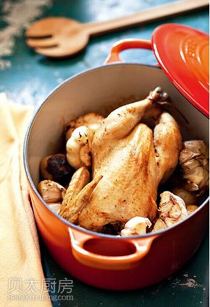 6. 上桌时,把蒜挤出来配鸡肉食用。