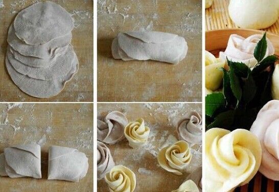 3.另外把面饼按扁,包入馅心,又变成了另外的一种花色面点;