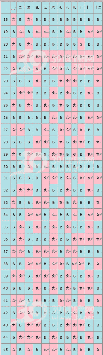 如果你对孩子的性别仍有很浓的兴趣,可以看看中国700年前古墓里面的一个日历表。只需要找出母亲怀孕的年龄和月份,通过以下的表就可以预测孩子的性别。虽然据说这个表有高达90%的成功率,但要记住这仅供参考娱乐,无论男孩还是女孩都是你的宝贝。