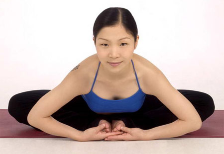 6.吸气,回正,两臂抱小腿。呼气,贴向胸前。反面亦然。