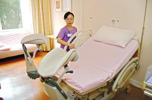 这是广医二院的“贵宾产房”,在谭丽住的306号房门上,挂了一只卡通小熊,护士说,门上挂的这个标志是用来区分有人和没人住的房间,尽管只是一个极小的细节,却也别具匠心。在走廊的一头是一间分娩房,昨天夜里,谭丽就是在这里生下孩子的。尽管第一次做妈咪难免有些紧张和痛楚,可分娩房里先进的仪器和设备还是为她分担了不少。单单一张价值20多万元的产床就是从美国进口的,只消一个按钮便可以升起或落下,非常方便,坐厕还可以加热,就连垃圾桶都是感应式的,只要用手轻轻在上面拂一下,桶盖就会自动打开。
