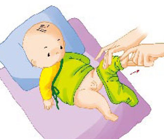 大人的手从裤脚管中伸入,拉住小脚,将裤子向上提,即可将裤子穿上了。穿连衣裤时,先将连衣裤解开口子,平放在床上,让新生儿躺在上面,先穿裤腿,再用穿上衣的方法将手穿入袖子中,然后扣上所有的钮口即可。