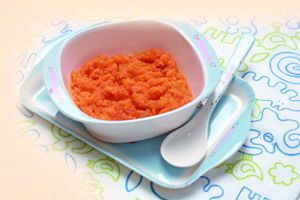 做法:胡萝卜切片放水中,淋入香油,煮至软烂,用小勺压成泥。