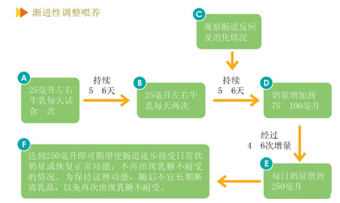 对经过上述渐进性调整喂乳量的婴幼儿仍有不耐受乳糖时,可换用不含乳糖的配方奶粉喂养,或在医生指导下换用大豆配方奶粉喂养。
