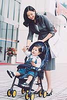 在两辆手推车交会时,要留心宝宝的手脚,注意不要被夹到。