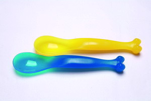 勺子要选择宝宝专用勺,大的勺子会让宝宝吃成“小花猫”,更不利于宝宝自己拿勺吃饭;1岁以内的宝宝,勺子材质最好是硅胶或木质,不锈钠材质的勺子边缘比较犀利,容易碰伤宝宝的小牙齿。