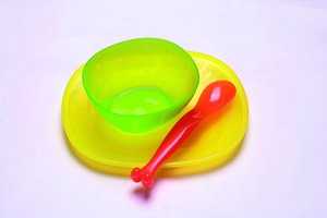 可以用家里现有的较小的碗,也可以准备宝宝专用的小碗,颜色不能太鲜艳,能用微波炉加热,耐摔就可以了。彩色颜料中往往含有铅,对宝宝的生长发育极为不利。