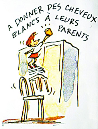 12.用来提那些谁也答不出的问题,把父母搞疯。不然,我们怎么能知道疯狂和“书到用时方恨少”的滋味呢?有了孩子,我们真的就可以变得很谦虚,很有自知之明。在大街上看看那些单身汉和爸爸们不同的表情就行了。有的是意气风发指点江山才华横溢的样子……有的呢,是谦卑的、和蔼的、认命的,一副后生可畏的无奈劲儿。