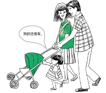 有一天,爸爸妈妈带3岁的托尼散步。在过马路时,托尼不愿意爸爸妈妈拉着他的手,老想挣脱,于是爸爸说:“托尼,你要么拉住妈妈的手,要么拉住爸爸的手。如果你不愿意,那么你自己想一个保证安全的办法。”托尼想了一会儿,说:“我抓住推车”。这个办法被爸爸妈妈接受了。