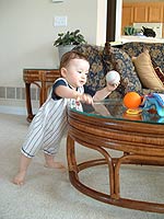 ⑵宝宝两岁以后已经有一定的辨别能力了,爸爸妈妈要耐心地告诉他什么东西可以扔,什么东西不能扔。