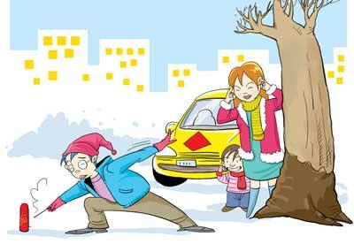 同时,节日期间不要随意燃放烟花爆竹,应在指定地点燃放。鞭炮在爆炸时,外面的纸壳被炸得粉碎,带火的纸屑和焰火往往随风飘落,因此,放鞭炮时要注意周围的环境。放鞭炮要远离棉花、木材、稻草垛等可燃物。在庭院内、屋顶平台上燃放烟花爆竹时,应将堆放的可燃物用不燃物质遮盖起来。燃放烟花爆竹残片上有火星时,要立即将其熄灭。5级以上大风天气千万不要燃放烟花爆竹,否则容易引起火灾。要将烟花爆竹放在没有热源、火源、电源和防止老鼠啃咬的地方,以免发生意外情况,造成损害。禁止携带烟花爆竹乘坐汽车、火车、船舶和飞机。还要教育儿童,不要在室内或火炉内燃放鞭炮。节假日离家外出一定要关好门窗,防止烟花爆竹飞进屋内引起火灾。