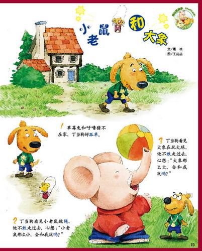 3. 丁当狗看见一头大象在玩大球,他不敢走过去,心想:“大象那么大,会和我玩吗?”