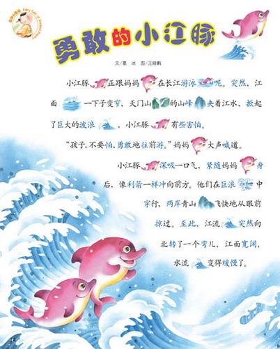 突然,江面一下子变窄,天门山的山峰夹着江水,掀起了巨大的波浪,小江豚有些害怕。 “孩子,不要怕,勇敢地往前游。”妈妈大声喊道。 小江豚深吸一口气,紧随妈妈身后,像利箭一样冲向前方。